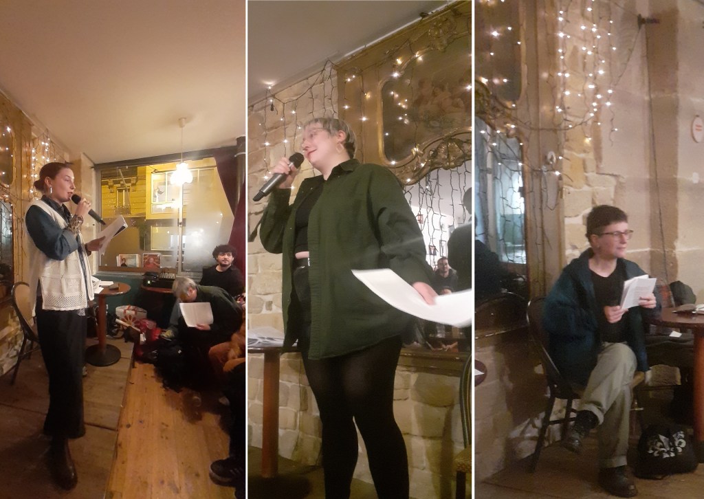 La soirée a été ponctuée de lectures variées : poésie, récits à la première personne, et même un code informatique narratif. Parmi les moments forts :